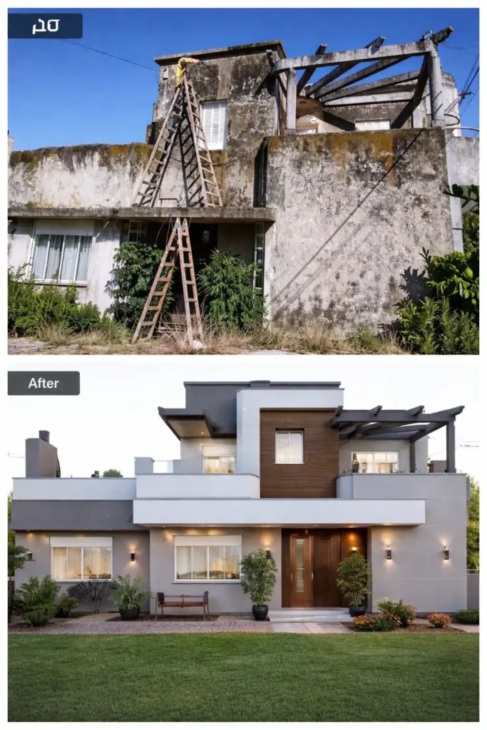 • ترميم المنازل: إصلاح كامل للمباني القديمة وتحسين الهيكل والتشطيبات.